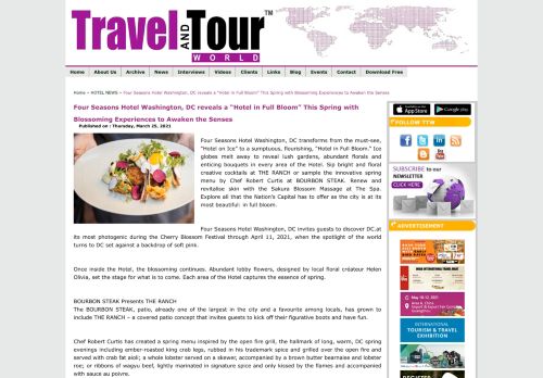 Four Seasons Hotel Washington, DC transforms from the must-see, “Hotel on Ice” to a sumptuous, flourishing, “Hotel in Full Bloom.” Ice globes melt away to reveal lush gardens, abundant florals and enticing bouquets in every area of the Hotel. Sip bright and floral creative cocktails at THE RANCH or sample the innovative spring menu by Chef Robert Curtis at BOURBON STEAK. Renew and revitalise skin with the Sakura Blossom Massage at The Spa. Explore all that the Nation’s Capital has to offer as the city is at its most beautiful: in full bloom.